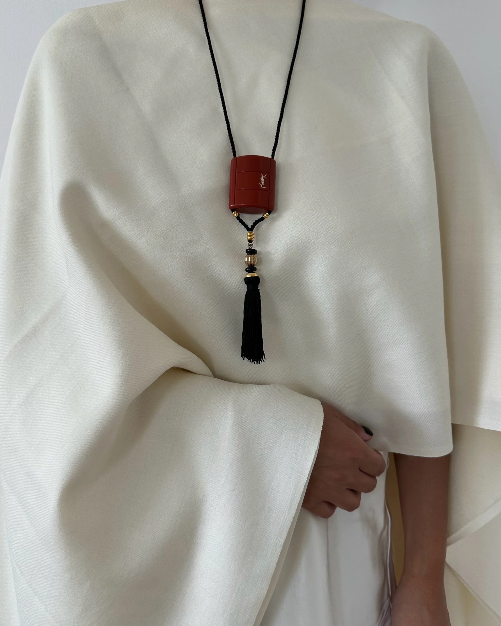 Vintage fur coat Sold out Vintage fur scarf Vintage fur coat YSL tassel necklace Sold out Issey Miyake pleated Top Sold out Cartier Trinity Bag Charvet brown leather slippers Miu Miu Ribbed Top Tassel Oval Clutch Bag Sold out Miu Miu Jersey Skirt Prada Pony Hair Bag Sold out 1930's Cream Crochet Gloves Céline Phoebe Philo two tone boots Vintage Japanese vase Sold out Tiffany & Co. Elsa Peretti bean lighter Vintage wrought iron lamp base Wood bangle cuff Odilon Redon Black Dome Ring Liaigre: 12 projects